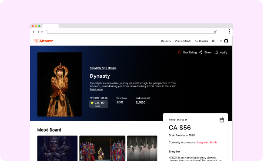 Attractr helps you monetize your entire production process—not just opening night.