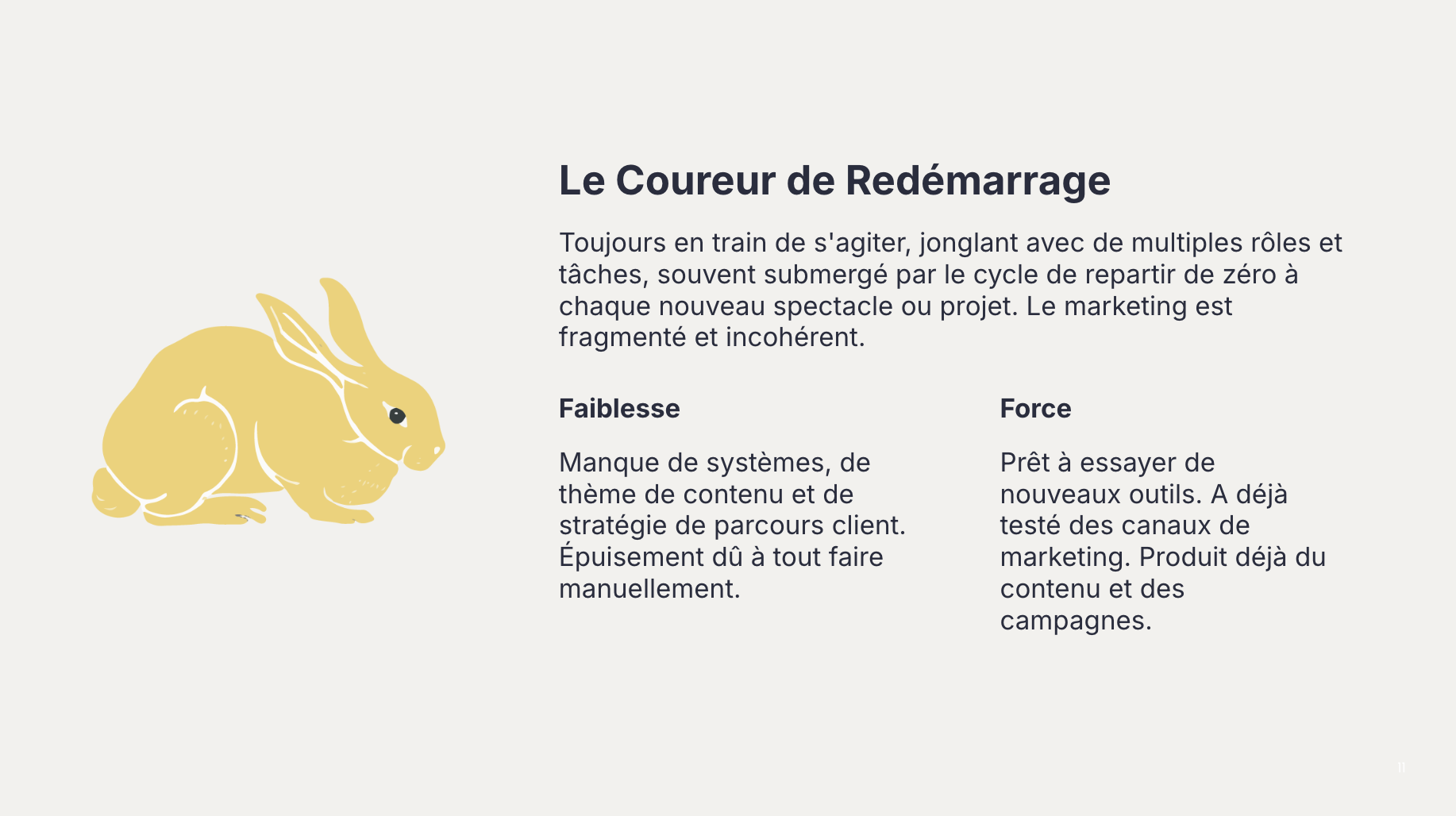 Vous créez des spectacles de qualité, mais vous avez du mal à suivre côté marketing. Peut-être que vous vous épuisez à tout faire seul·e, ou que vous ne comprenez pas pourquoi vos contenus digitaux ne convertissent pas.